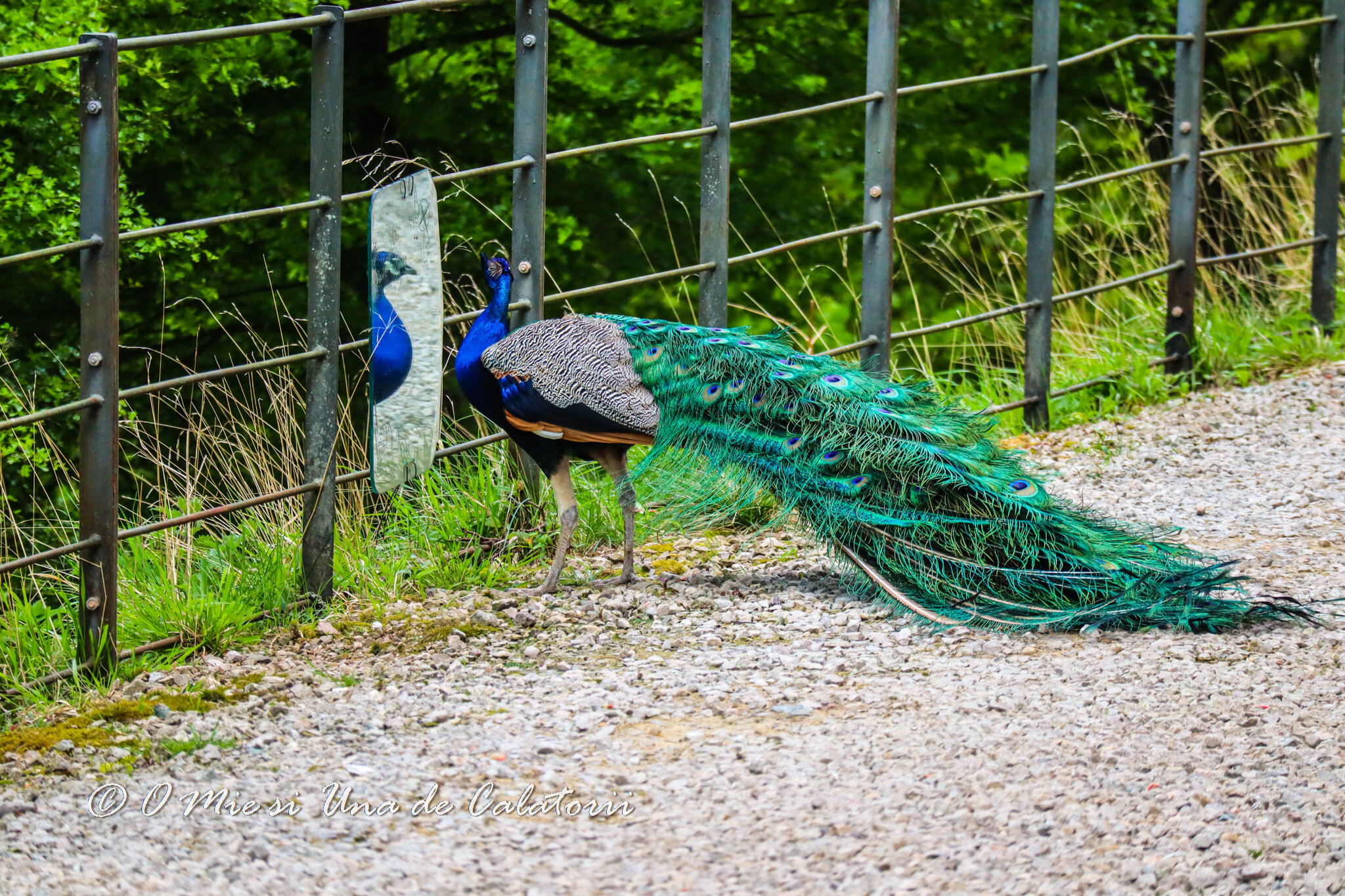 De un albastru hipnotizant, cu o trena ce sfideaza perfectiunea, paunii apar unul cate unul si fac spectacol. Deloc fricoase, obisnuite sa fie adulate, pasarile exotice, aduse la castel din India si Sri Lanka, nu se sfiesc sa stea la cadru. Ba mai mult, se rotesc usor cat sa-ti lase timp pentru fotografia perfecta, constiente de frumusetea lor. Atunci cand razele soarelui le ating penajul, capata sclipiri stelare. Frumusete dincolo de cuvinte. Perfectiune dincolo de limite. Incantare dincolo de imaginatie.