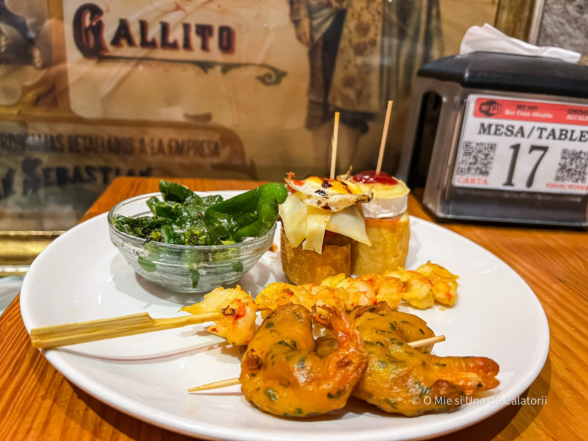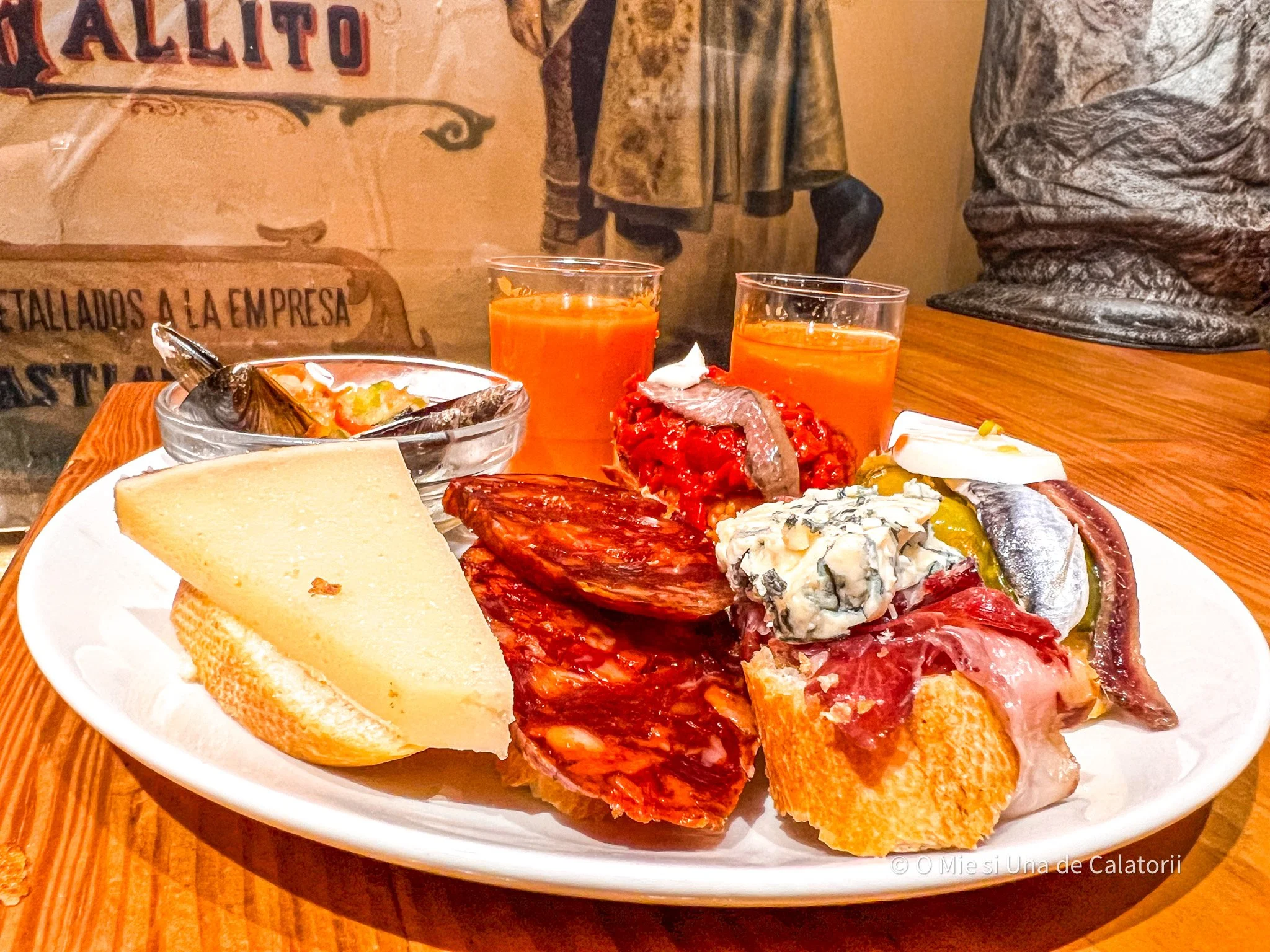 Meniul nu impresioneaza prin artificii, ci prin simplitate si gust: jamón-ul taiat fin, pintxo-urile clasice, tapas-urile generoase vorbesc despre respectul pentru produs si pentru traditie. Totul este gandit pentru a fi impartit, degustat, comentat.
